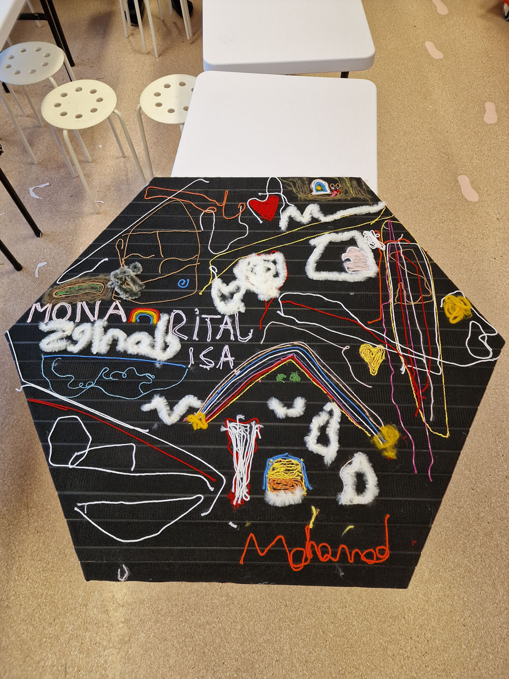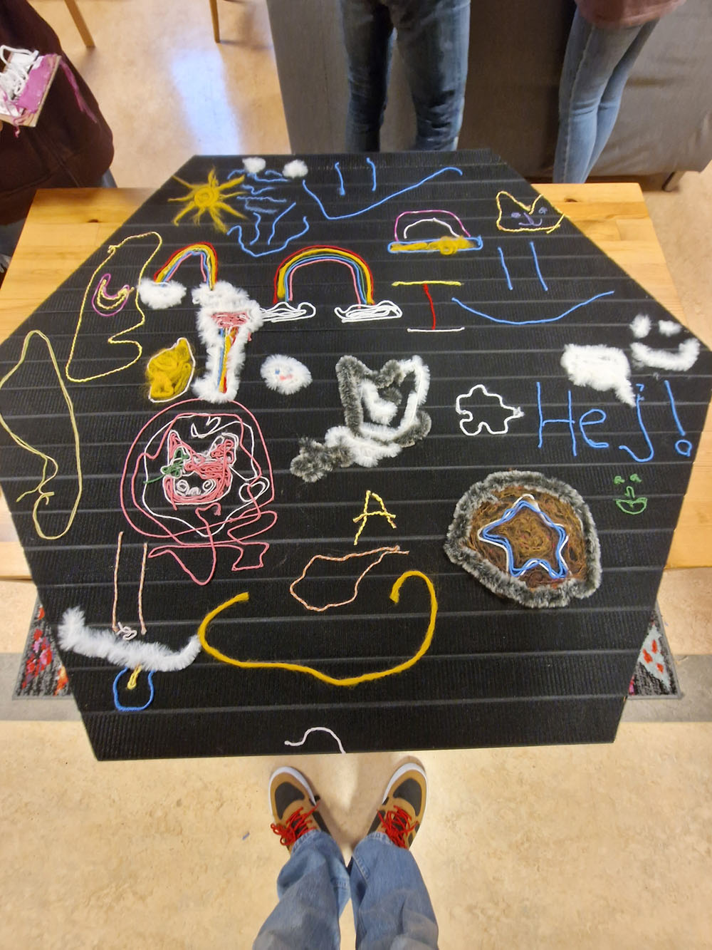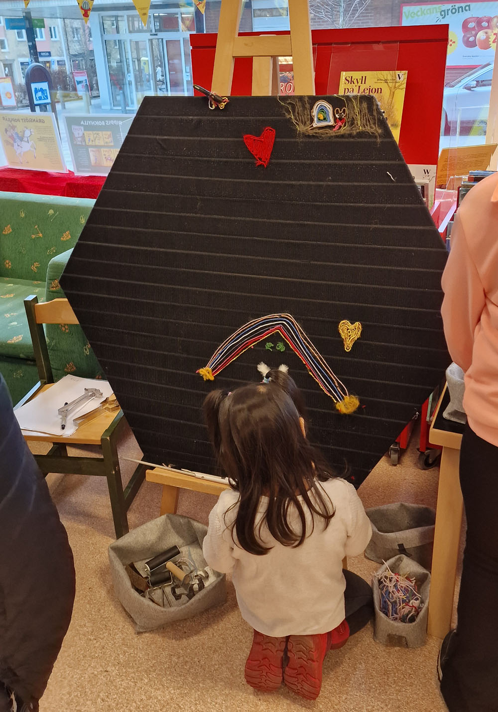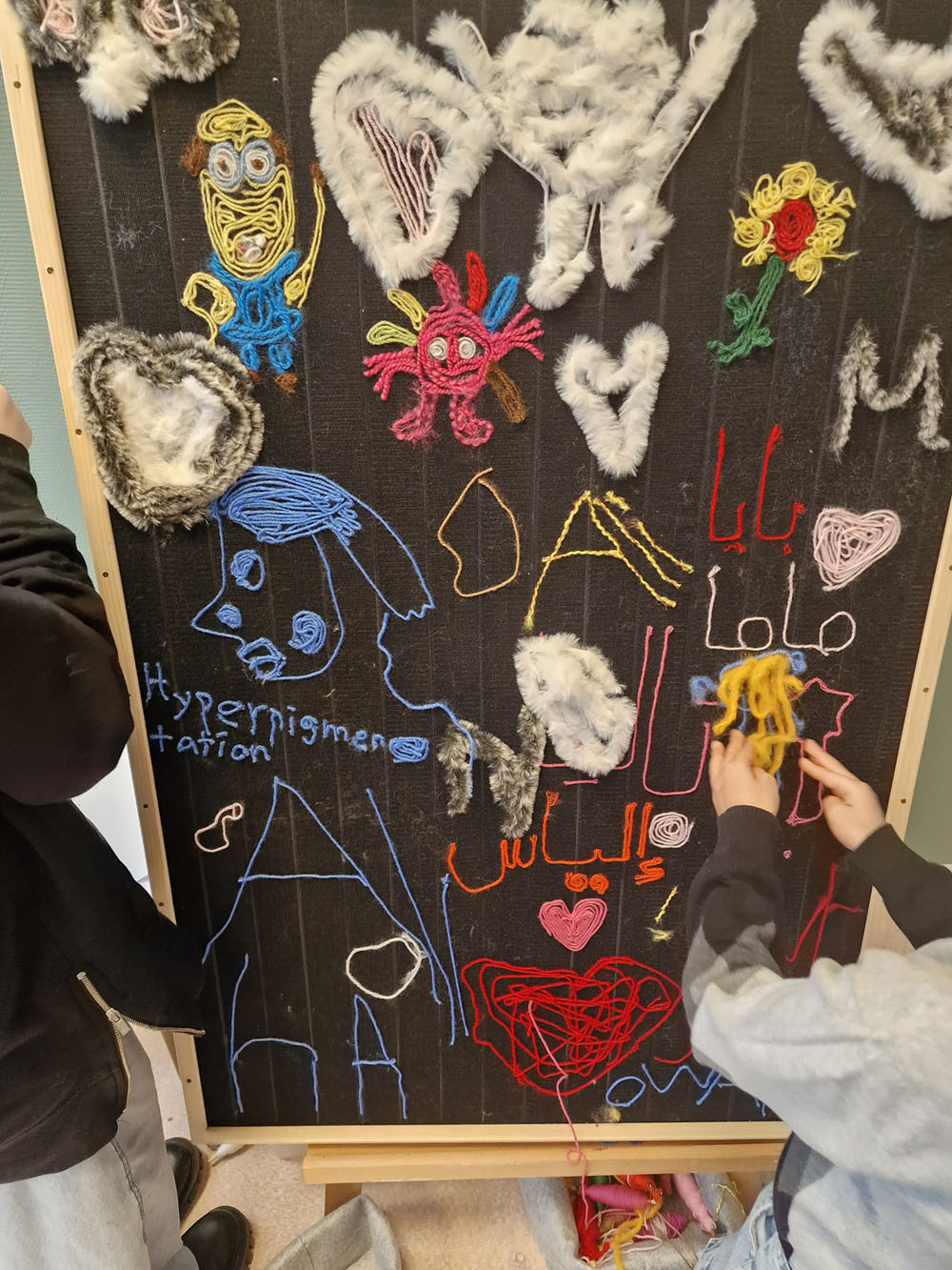 Barnen fick bland annat prova att ”måla” med garner på tavlor gjorda av kardborreband – en slags garngraffiti skapat av enbart trådar.