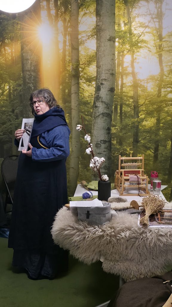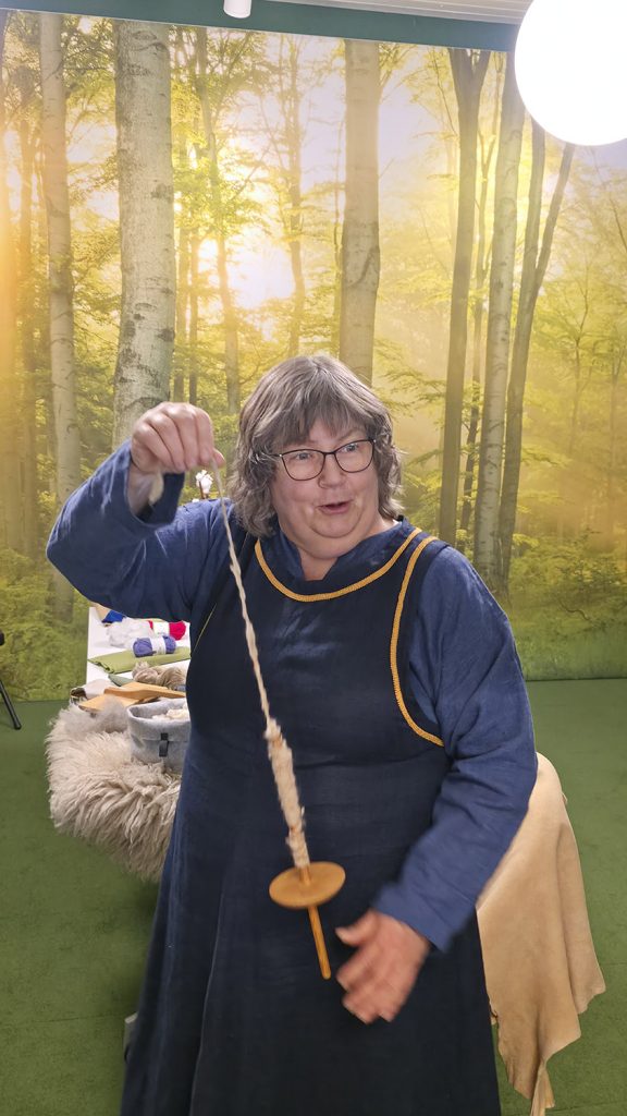 I år har temat varit garn och trådar. Pedagogen Helena från länsmuseet har berättat om historien kring hur man gör tråd och när folk lärde sig att väva tyger. Slöjdpedagogerna Gittan och Ioannis har visat några slöjdtekniker med garn.